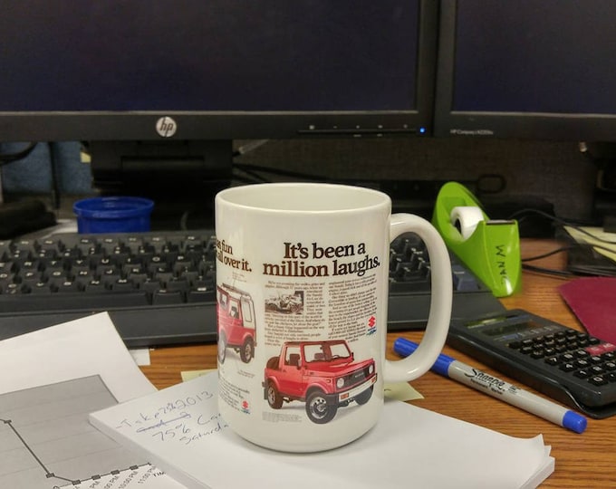 Suzuki Samurai Travel Mug: Vintage Auto Ad, Stainless Steel 20 oz